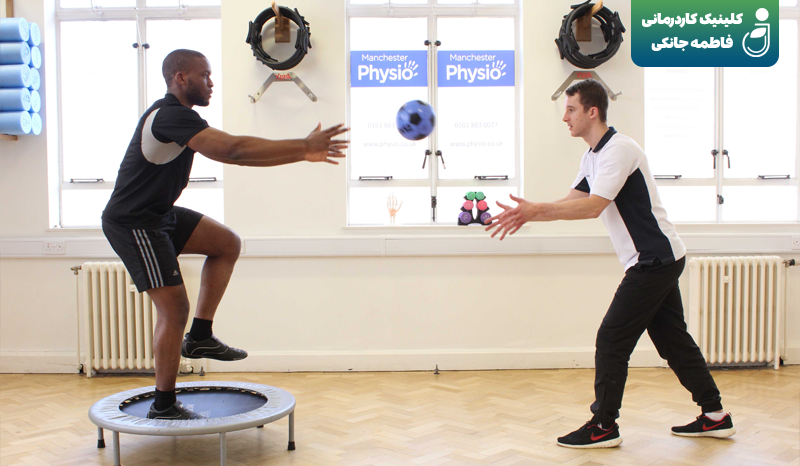- تمرین توپ تعادلی: نشستن روی توپ و حفظ تعادل بدون تکیهگاه.